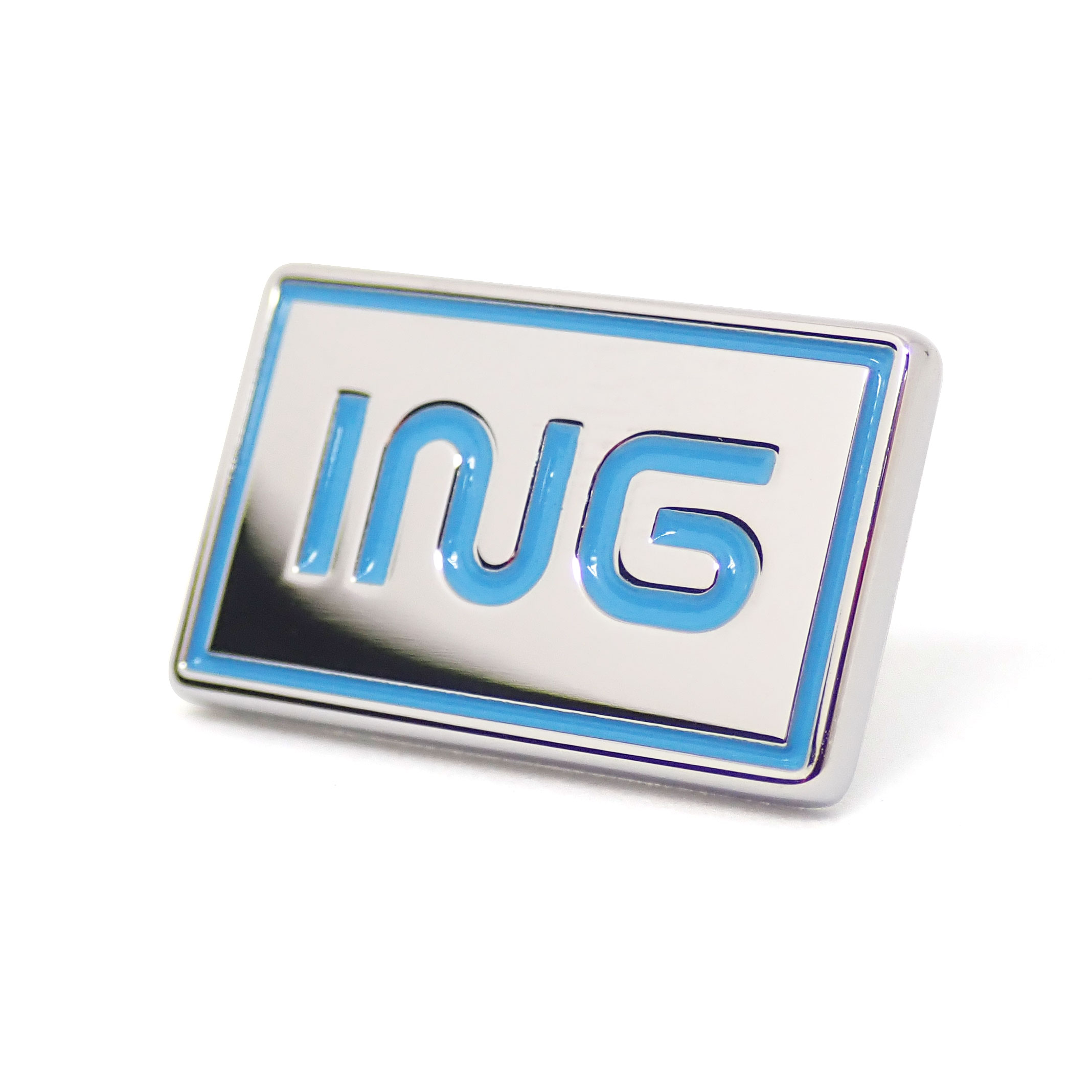 こちらの社章はバッジのベースになる部分へ凹凸をつけ、塗料を流し込む【色入れ仕上】にて製作させていただきました。
